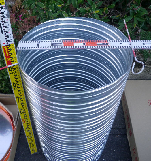 ステンレス管を地中に埋め、カーブミラーの柱が傾倒することがないよう