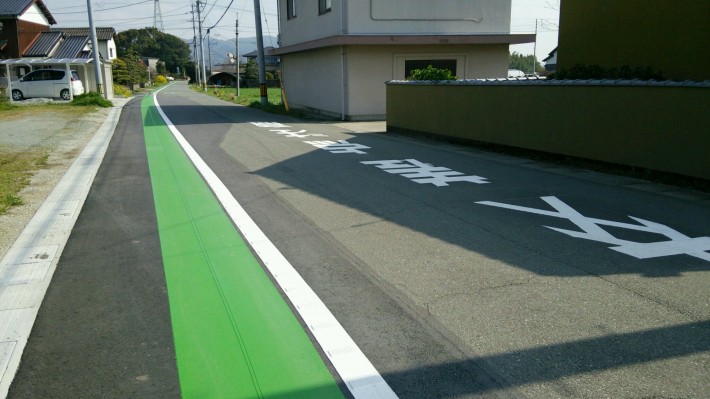ガタガタと振動が伝わり、運転者にたいして注意を促す区画線です。